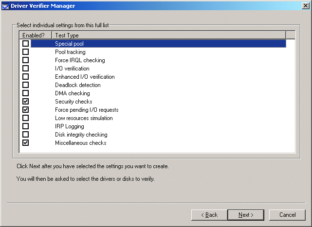 图 3 选中 Windows Server 2008 选项的驱动程序验证程序 (单击该图像获得较大视图)