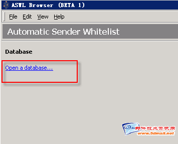 2.打开自动发件人白名单查看工具Auto Sender Whitelist Browser Tool),并点击“Open a database” 选择要打开的数据库文件: