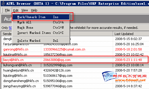 在以前因为自动发件人白名单数据库和灰名单数据库一样,是ORF自有的数据库格式,一般工具无法打开。