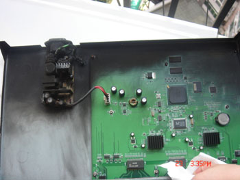 下面,我们利用今年度Qno侠诺的技术服务部门的实际案例,为大家说明受到雷击后,内部线路可能发生的情况。Qno侠诺的服务人员一般分类为重伤、轻伤及内伤,我们可以先看一下图片: