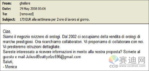 你是否曾经收到过邮件,声称可以为你提供机会一星期只要在家工作几个小时就可以获得额外收入?你是否怀疑过这到底是怎么回事?不过,垃圾邮件发送者正在物色响应这些邮件的人们,或者利用某些国家人们尚未起疑的状况借助其银行帐户帮他们处理交易。