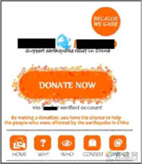 用户只要点击垃圾信息中包含的网址,就会进入一个欺诈性网站并被要求捐款。