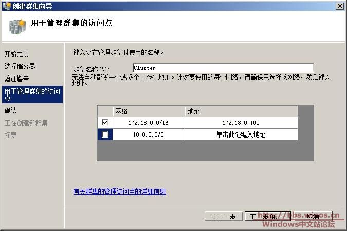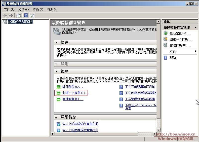 18.在"故障转移群集管理"对话框中选择"创建一个群集"
