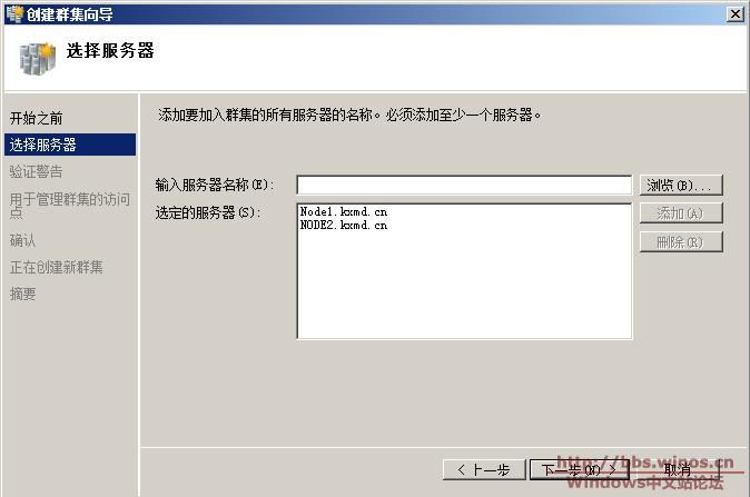 19.在"选择服务器"选项卡中选择两台节点服务器的