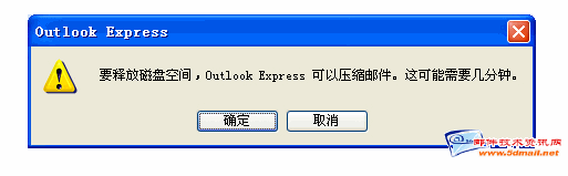 备注:Outlook Express 的每一个dbx数据库的大小限制是2048MB,即2GB空间。当Outlook Express使用一段时间后,在关闭时系统就会提示: