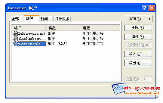 首先打开Outlook Express ,点击“工具”,点击“帐户”,点击“邮件”选中已经建立好的帐号,点击“导出”