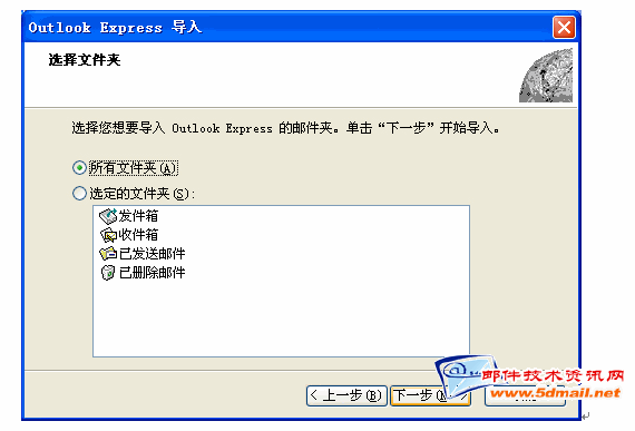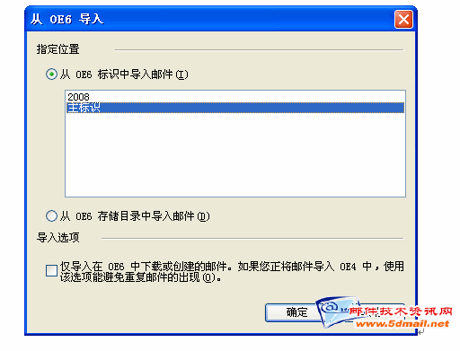 8.如上图,点击"下一步",出现如下图示,请选择从"OE6标识中导入邮件.选择哪个提示你压缩邮件的旧的标识,如主标识.