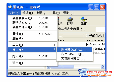 然后点击“文件”菜单,点击“导出”,选择通录簿(WAB)(A)...