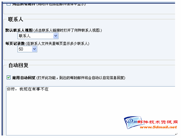 在worldclient上设置了自动回复后,有些用户发现自动回复只看到了一次。然后对方再发邮件给他都看不到自动回复了。