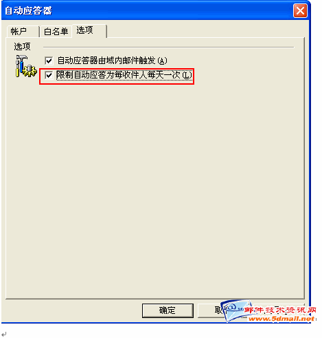 在帐户-----自动应答器------选项-----把限制自动应答为每收件人每天一次前面的勾去掉。