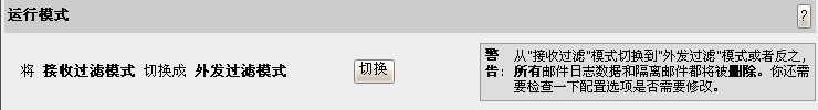 在这种方式下,梭子鱼反垃圾设备就只能做单一的外发过滤功能了。这种情况适用于企业使用多台梭子鱼中,划分一部分梭子鱼机器专用于外发过滤。