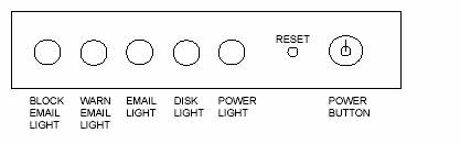 5 梭子鱼垃圾邮件防火墙前面板上有5个指示灯。含义如下: