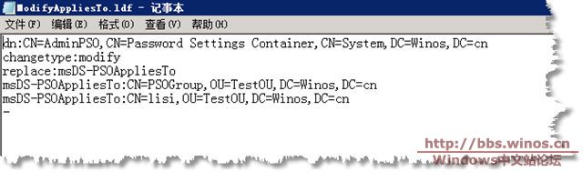 (该PSO的优先级)msDS-PSOAppliesTo:CN=PSOGroup,OU=TestOU,DC=Winos,DC=cn
