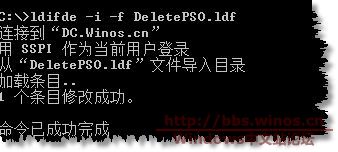 打开命令提示符,键入以下命令,如图4.ldifde –i –f ModifyAppliesTo.ldf
