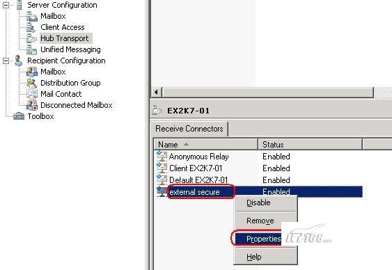 2. 在EMC中,右键选中该接收连接器,选择属性,如图12所示,