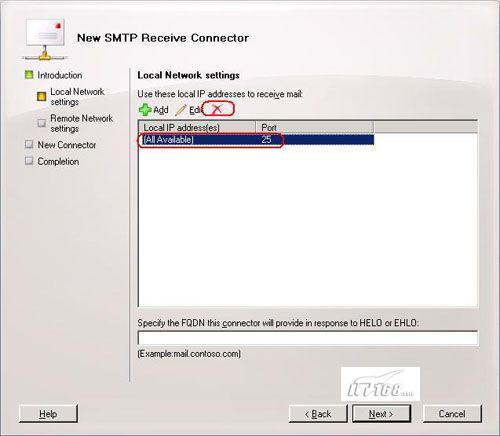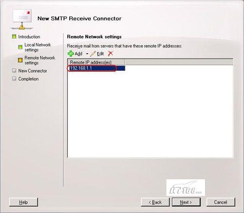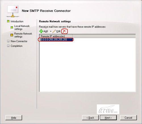 • Remote network settings 限制接受连接器只指定的服务器或者服务器组,该限制是必须的,因为接收连接器接受匿名用户的中继,通过IP地址来限制源服务器是在接收连接器上唯一的保护方法。
