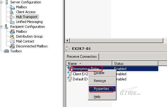 使用Exchange Management Console创建一个新的接收连接器,并授权中继权限给匿名连接,具体的方法如下:
