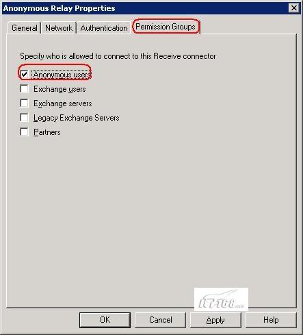 然后要在接收连机器上允许匿名中继,您必须在接收连接器上将下面的权限授予匿名登录的安全主体