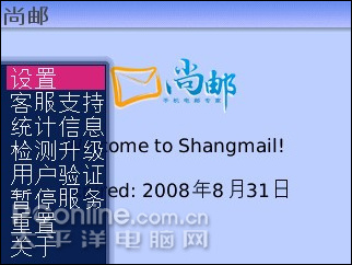 进入尚邮,拉出菜单,选择“设置”-“邮件设置”,进入邮件设置页面。